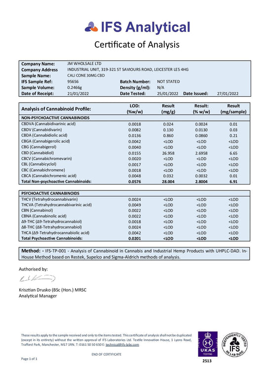 CALI CONES Hemp 30mg Full Spectrum CBD Infused Cone - Sour Diesel